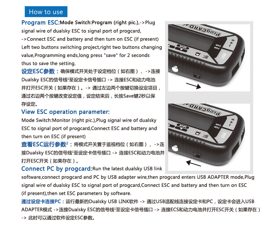 45844 ProgCARD Plus Compatible with all T&F ESCs