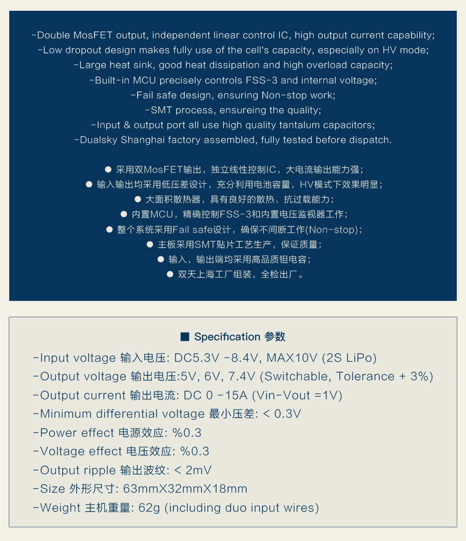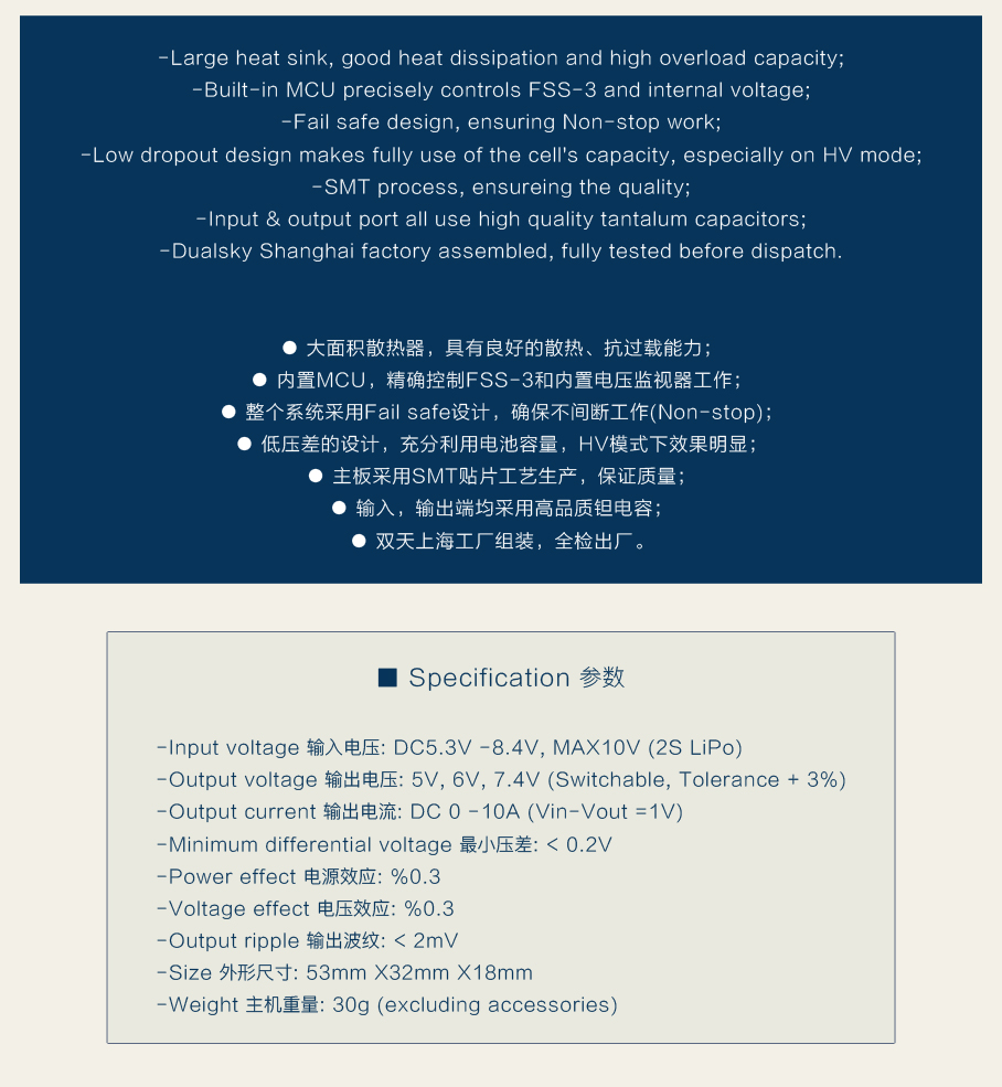 ● Dualsky Shanghai factory assembled, fully tested before dispatch.