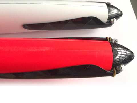 GM blades have less twist than usual, allowing them to fold flatter against a glider fuselage, reducing drag.These blades are thinner (they have a higher aspect ratio) than normal folding propeller blades, allowing larger diameter blades to be fitted without pulling too much current. This increases the propulsive efficiency of the powertrain. The reduced twist (flatness) also allows them to fold closer to the fuselage, and cause less drag when folded than other props. The flatness does reduce the efficiency slightly, but this is more than offset by the improved glide.