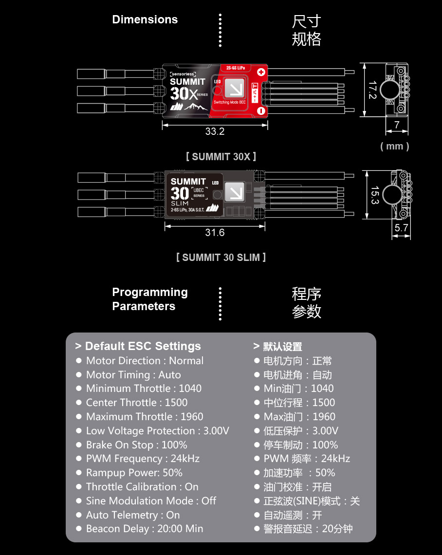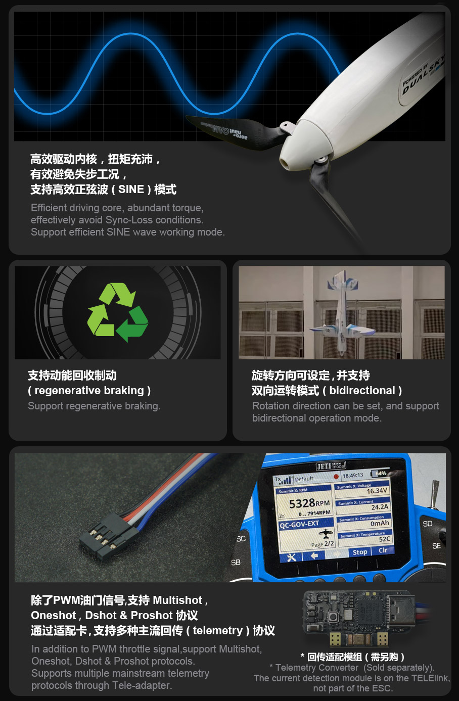 6. Implement multiple protection such as throttle, voltage, current, temperature and low RPM