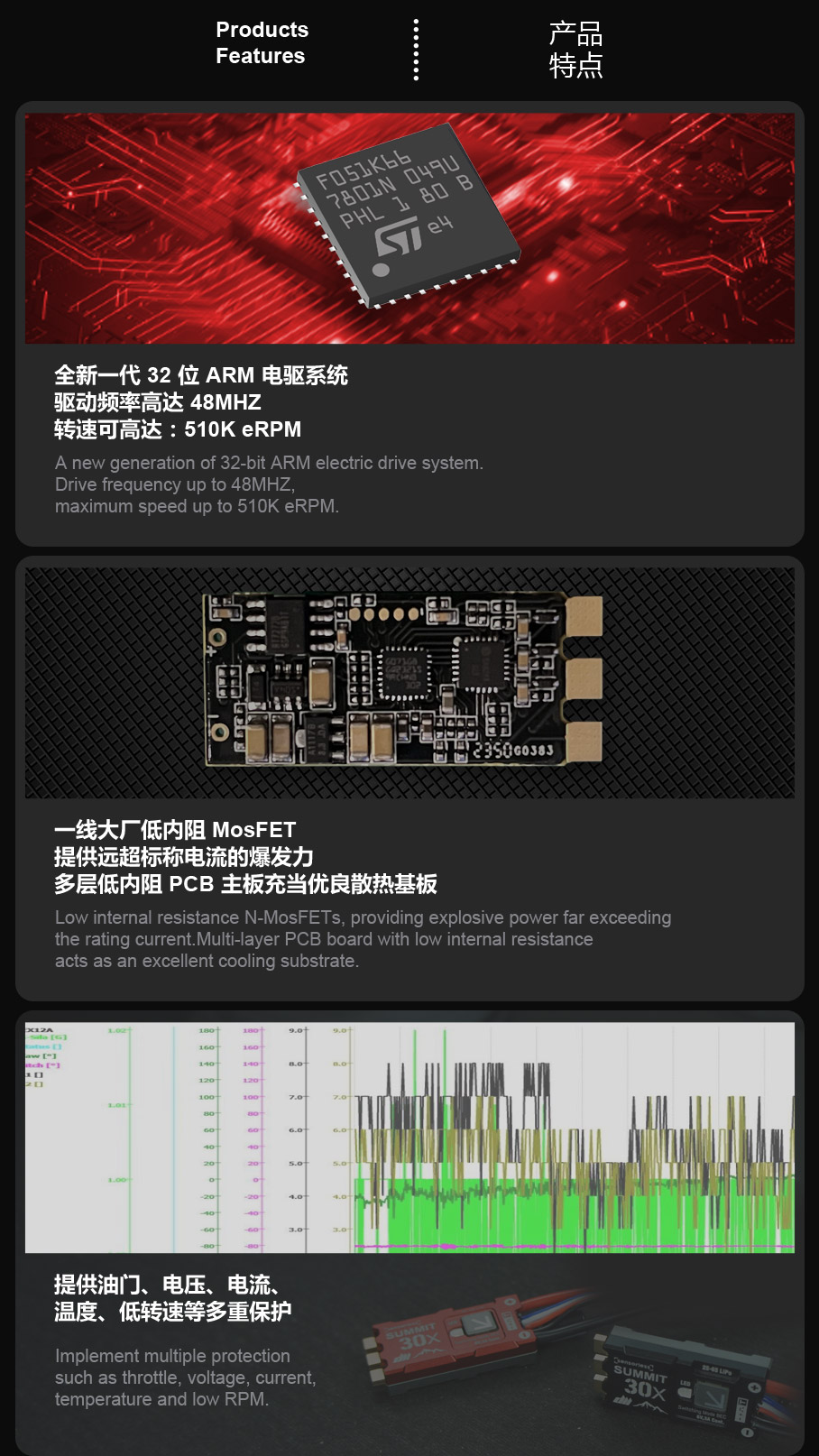 2. Drive frequency up to 48MHZ, maximum speed up to 510K eRPM
