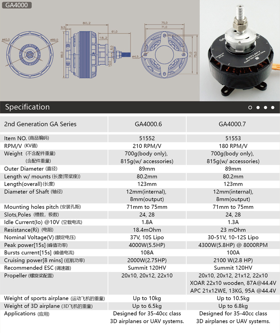 | 51553 | GA4000.7 180 RPM/V, 700g, 4300W | |||