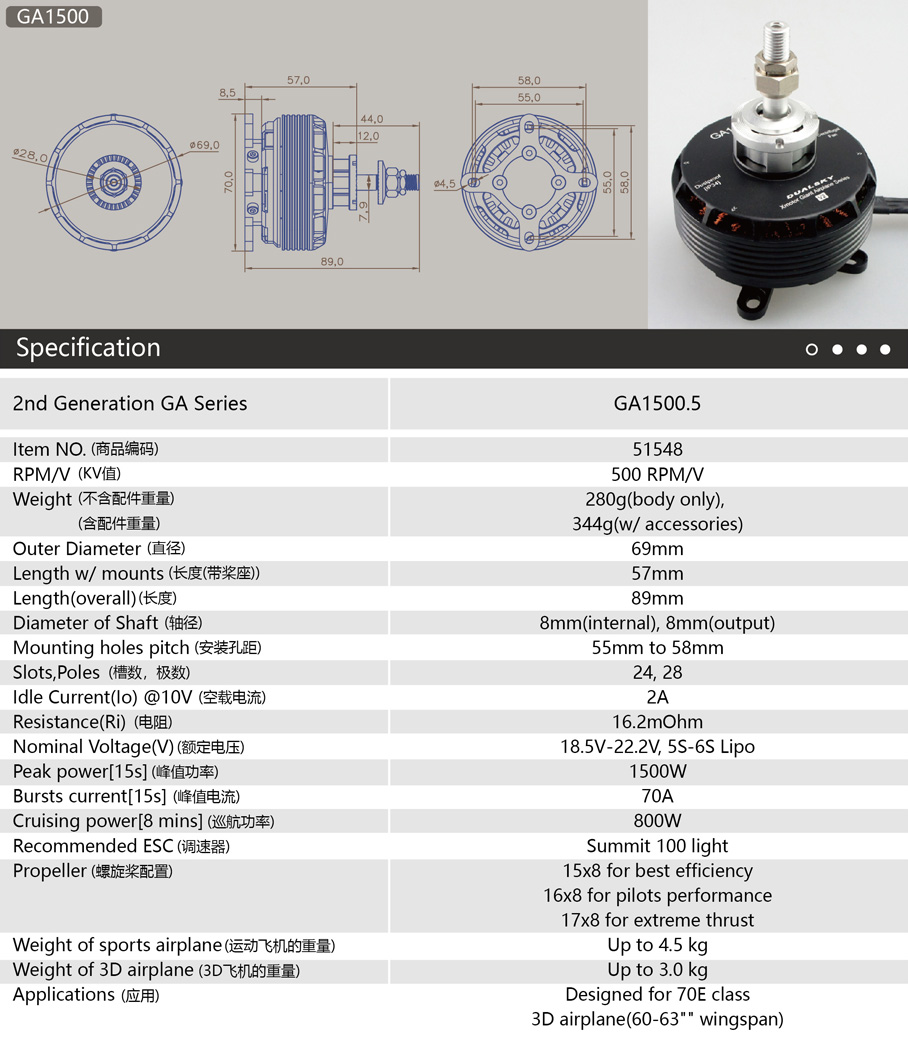 | 52093 | GA800.9 660 RPM/V, 170g, 880W (Special Edition, 錦標賽版本) | |||