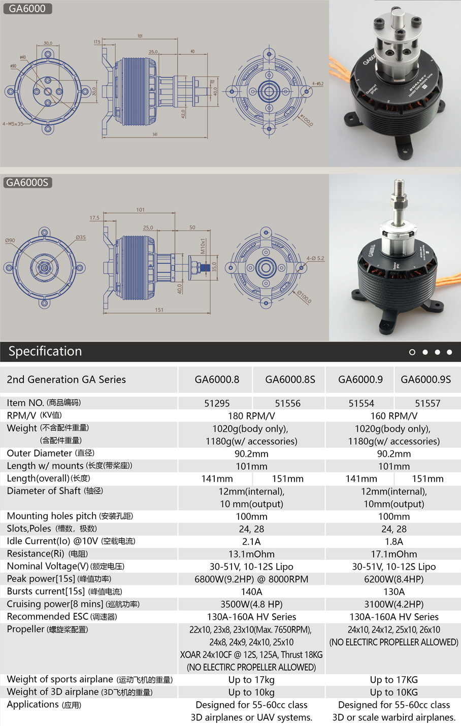 | 51295 | GA6000.8 180 RPM/V, 1020g, 6800W | |||
