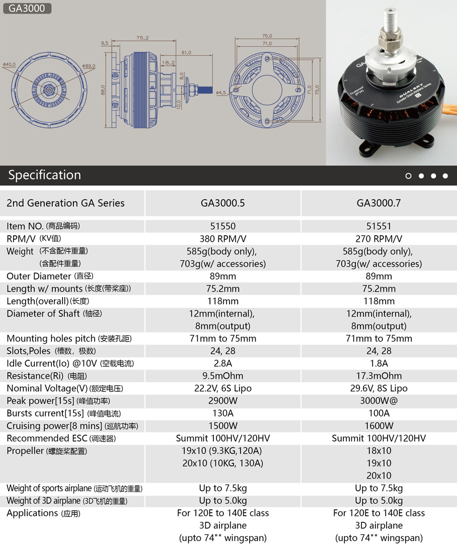 | 51550 | GA3000.5 380 RPM/V, 585g, 2900W | |||