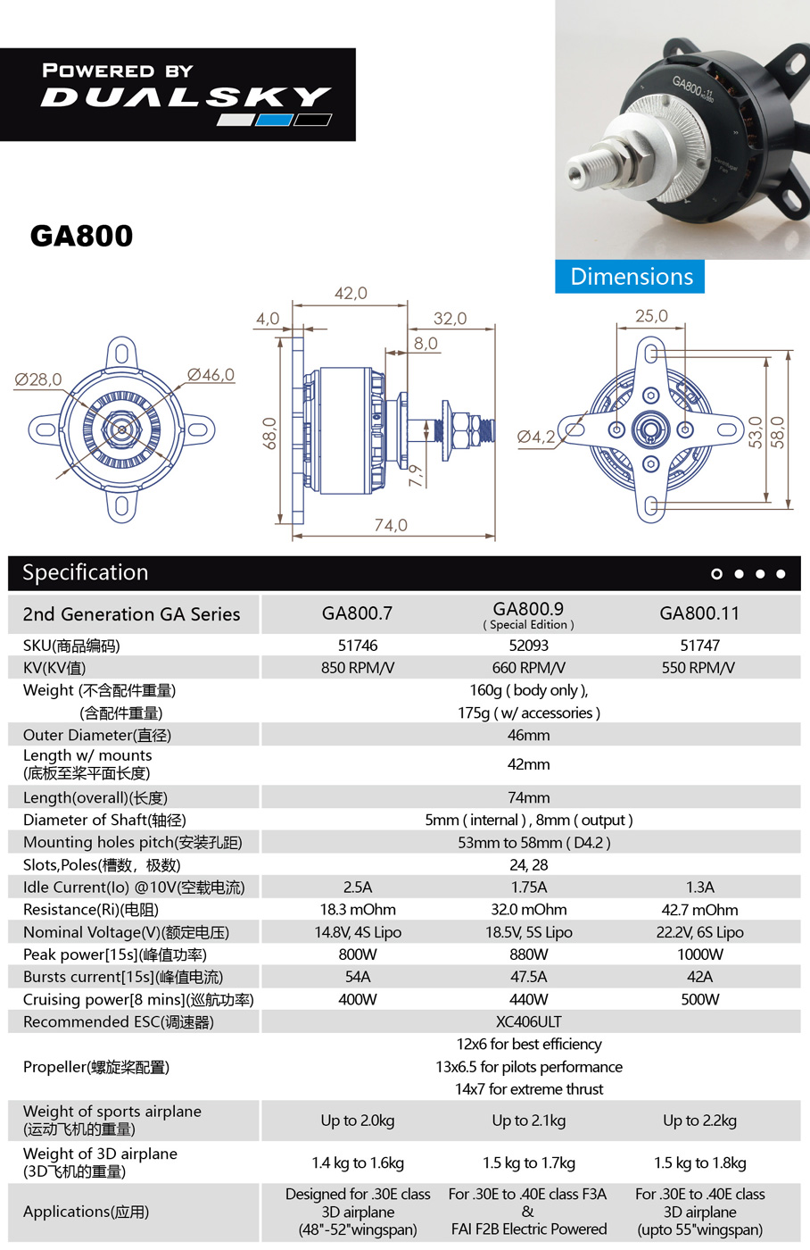 | 51746 | GA800.7 850 RPM/V, 170g, MAX 800W (Enhanced Edition) | |||