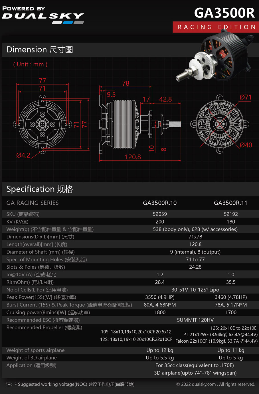 | 52059 | GA3500R.10 Racing Edition, 200 RPM/V, 538g, 3550W | |||