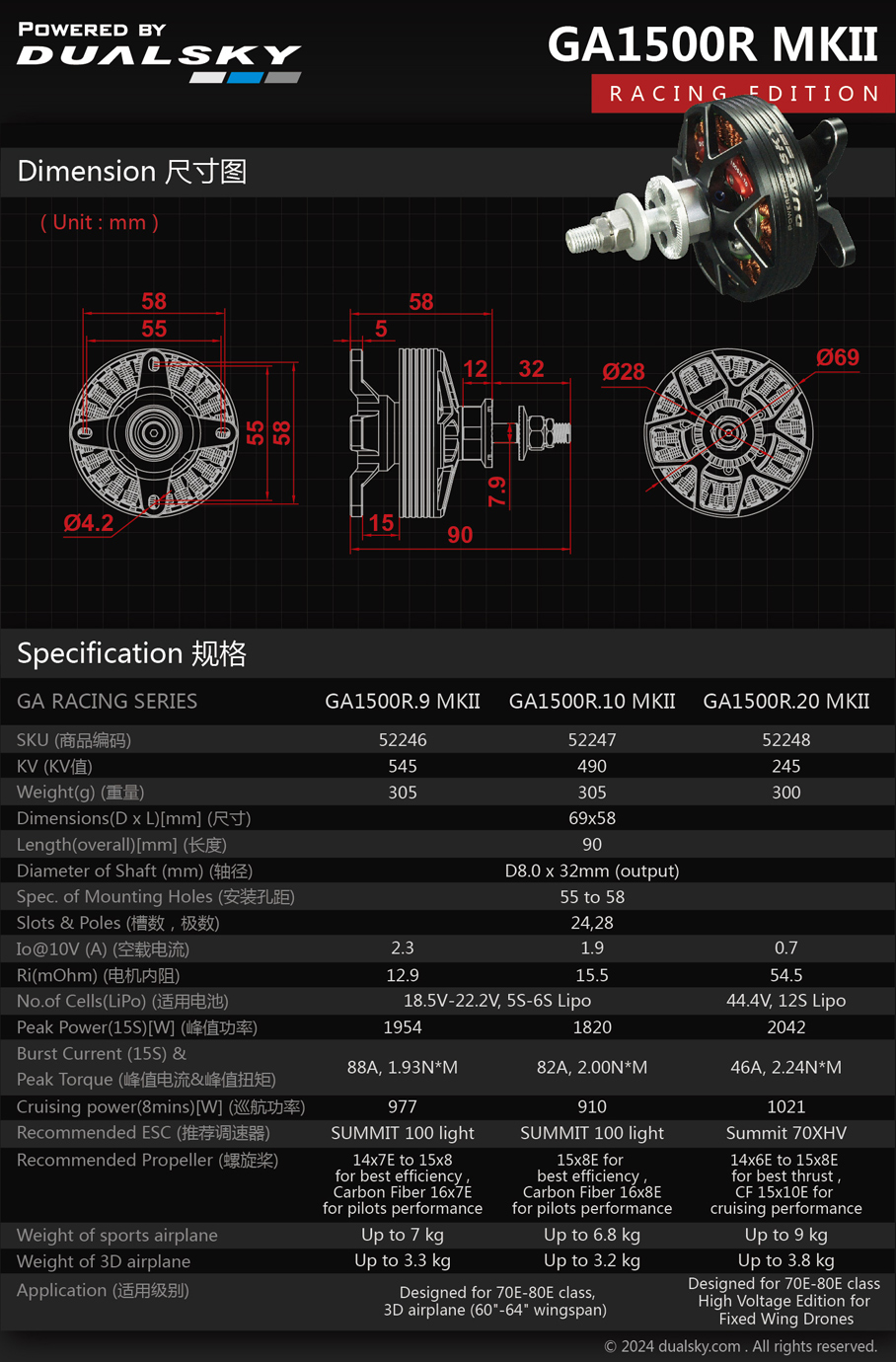GA1500R.9 MKII 545 RPM/V, 305g, 1950W |