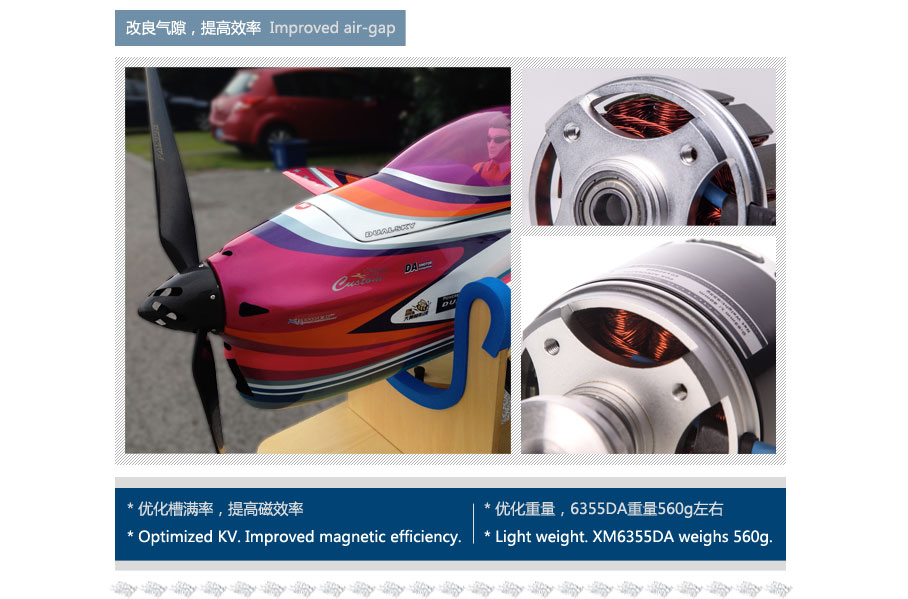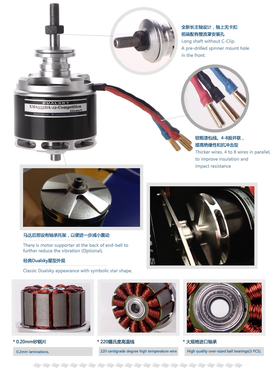 New designed long shaft without C-clip Imported over-sized ball bearing Rotor dynamic balancing Specially for F3A aircraft
