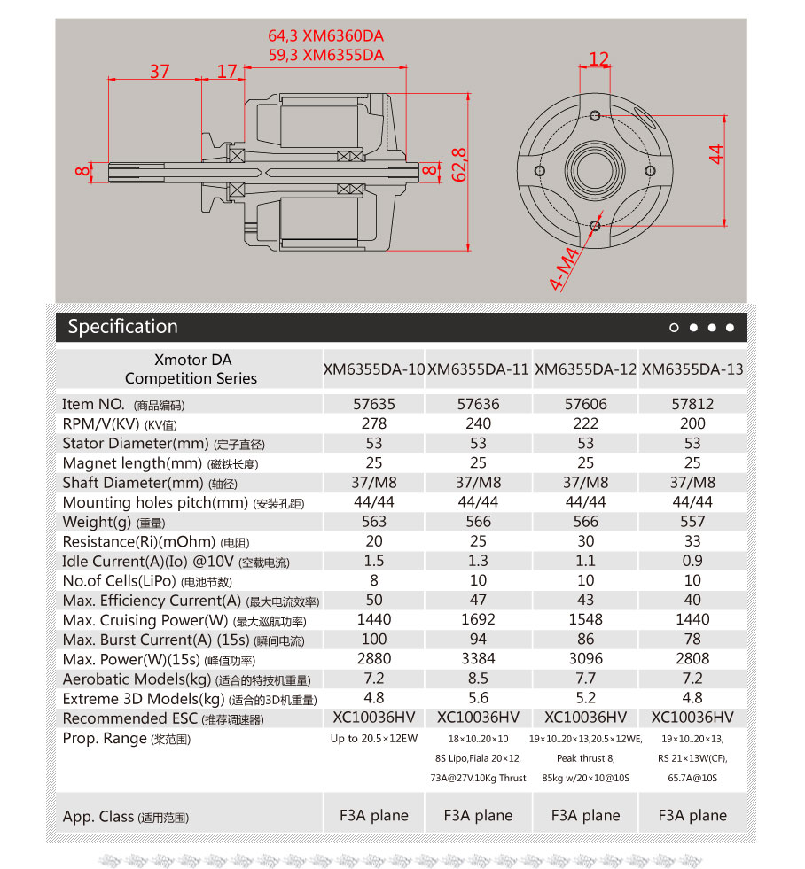57635 XM6355DA-10-Competition  278 RPM/V 563g