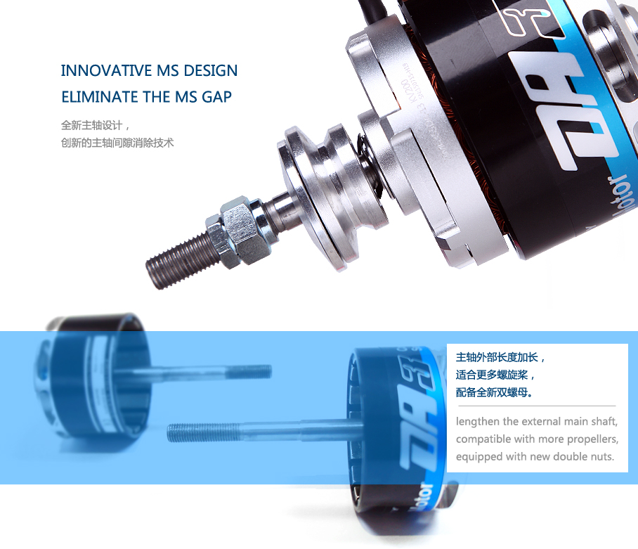 2.lengthen the external main shaft, compatible with more propellers, equipped with new double nuts.