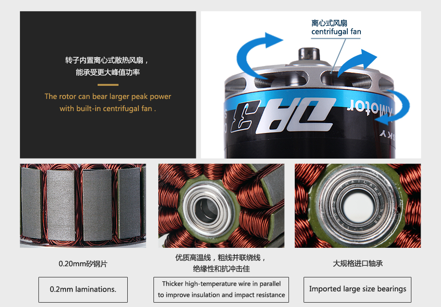 7.The rotor can bear larger peak power with built-in centrifugal fan .