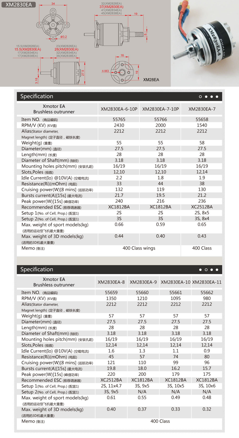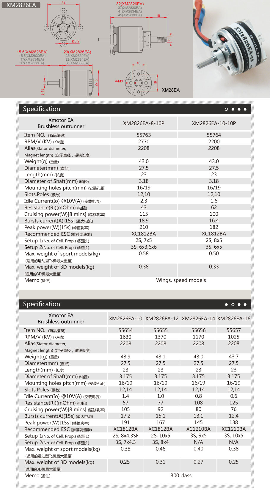55654 XM2826EA-10 1630 RPM/V 44g 137W
