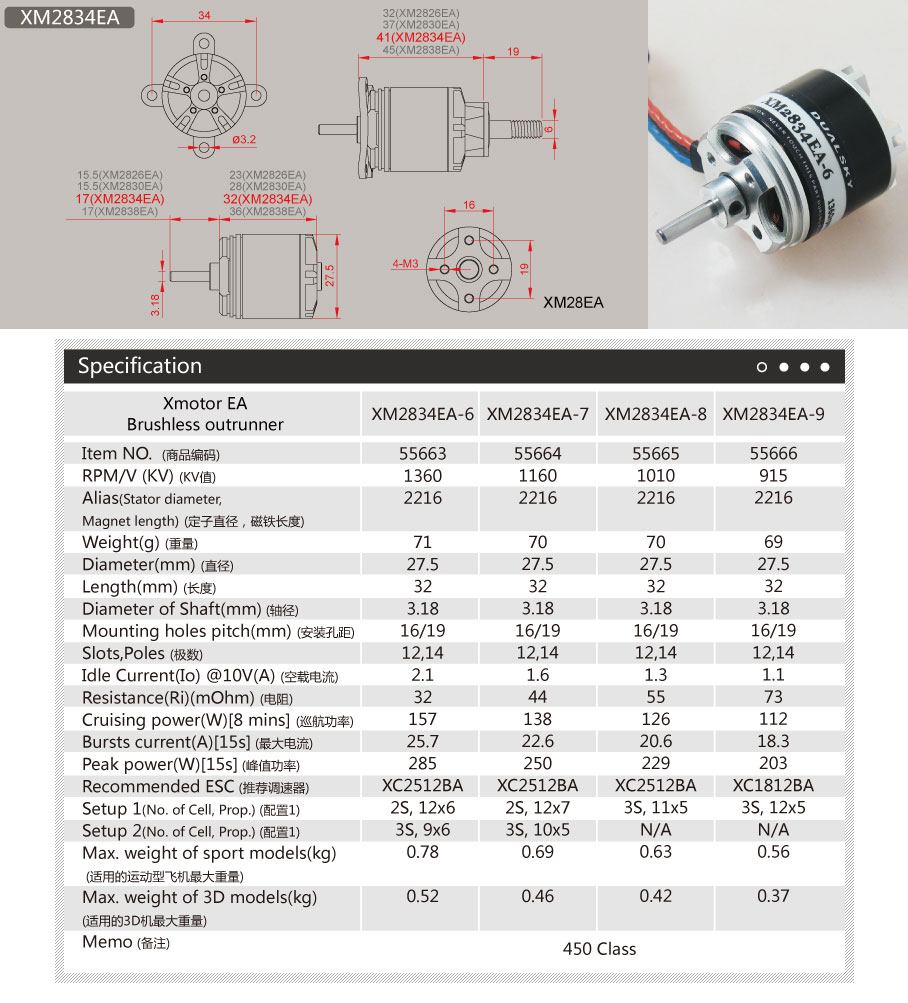 55665 XM2834EA-8 1010 RPM/V 70g 229W