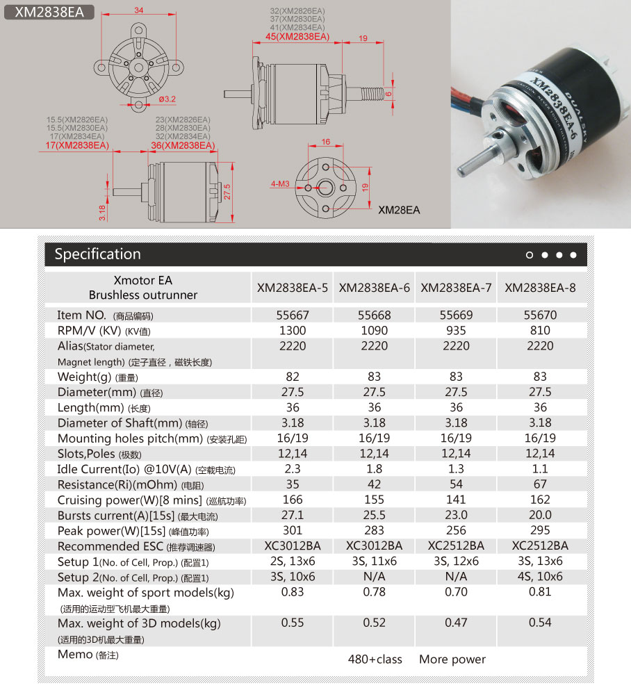 55670 XM2838EA-8 810 RPM/V 83g 295W