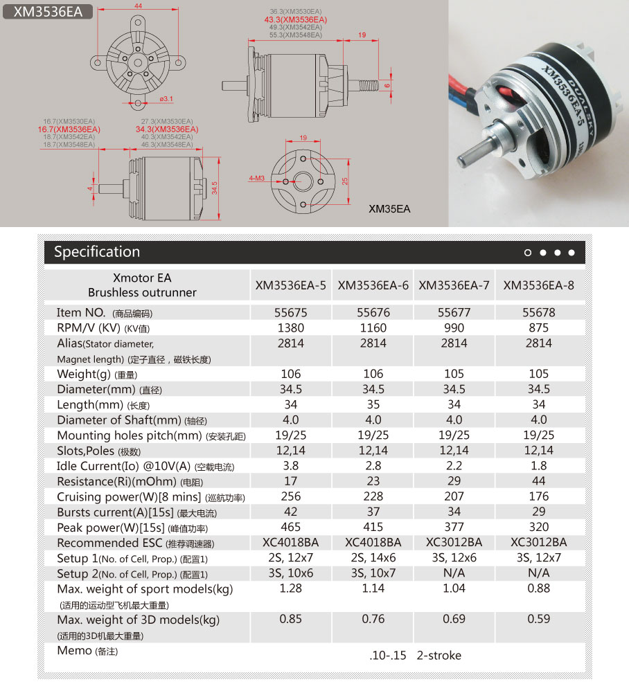 55675 XM3536EA-5 1380 RPM/V 106g 341W