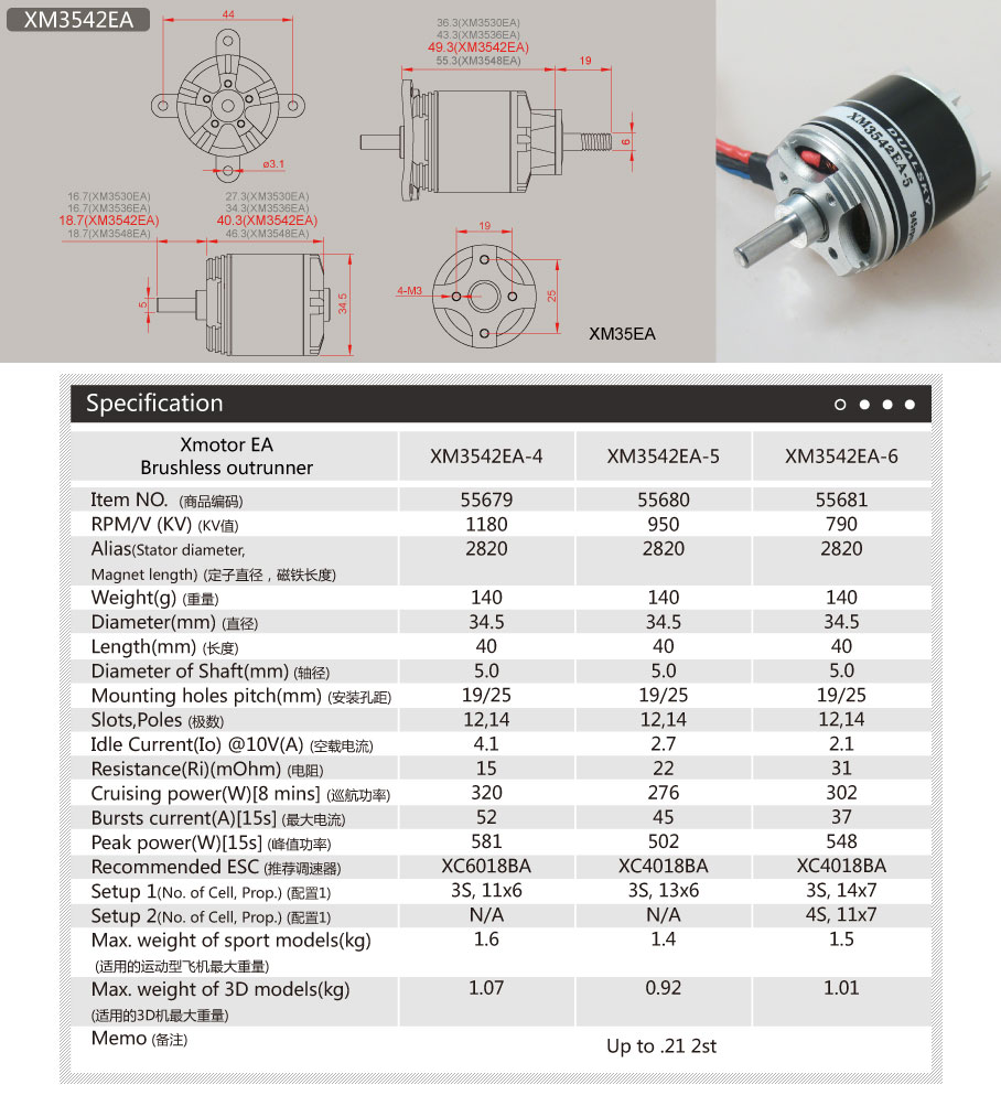 55680 XM3542EA-5 950 RPM/V 140g 502W