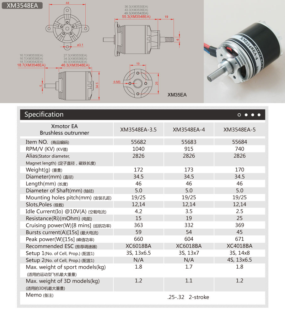 55682 XM3548EA-3.5 1040 RPM/V 172g 660W
