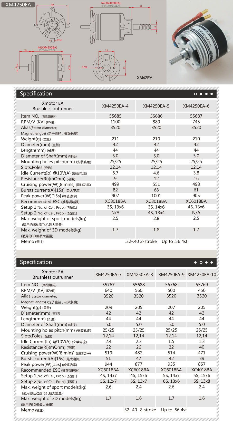 55685 XM4250EA-4 1100 RPM/V 211g 907W