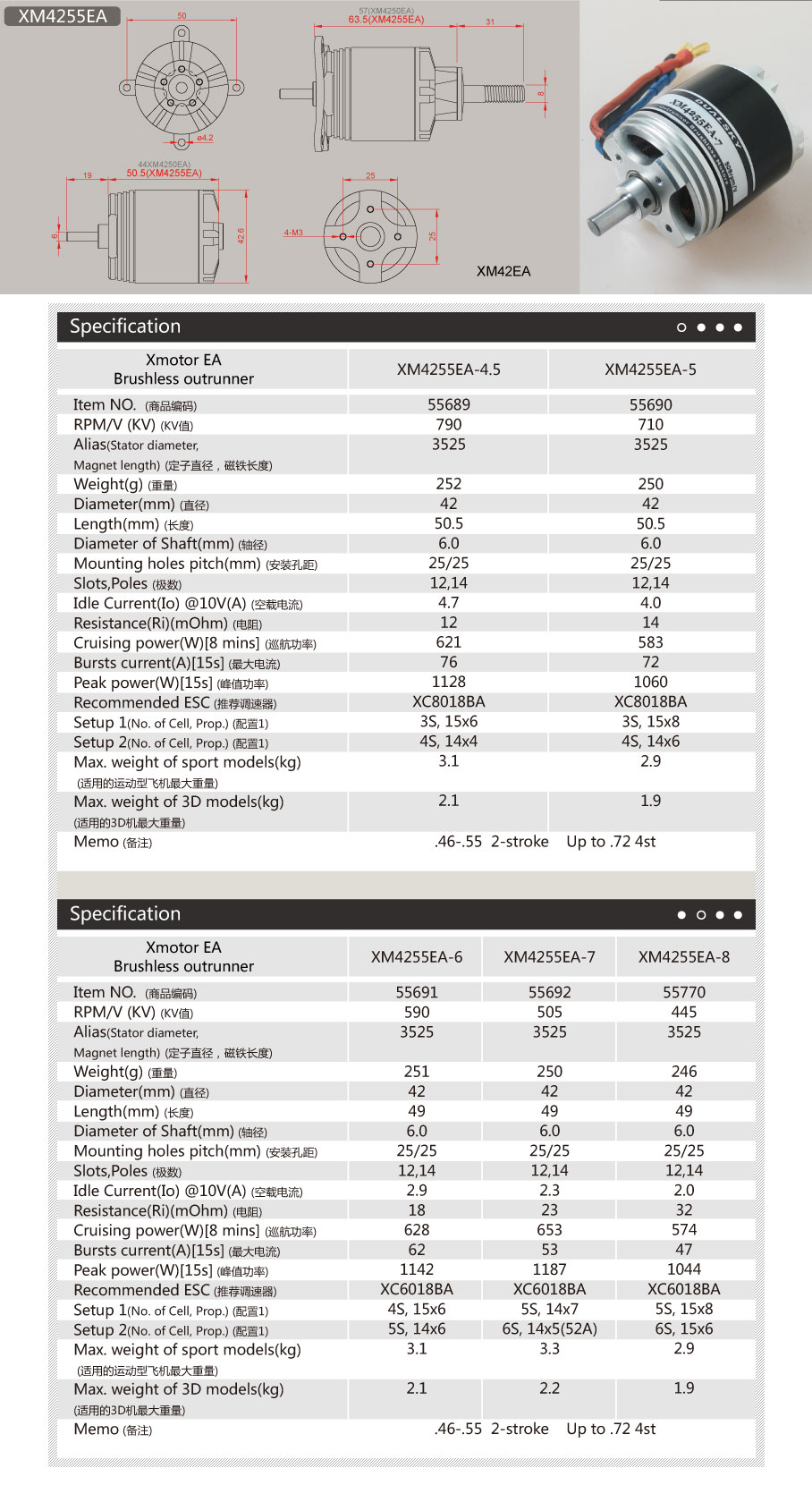 55770 XM4255EA-8 445 RPM/V 246g 1044W