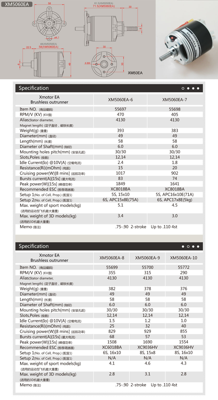 55772 XM5060EA-10 290 RPM/V 376g 1554W