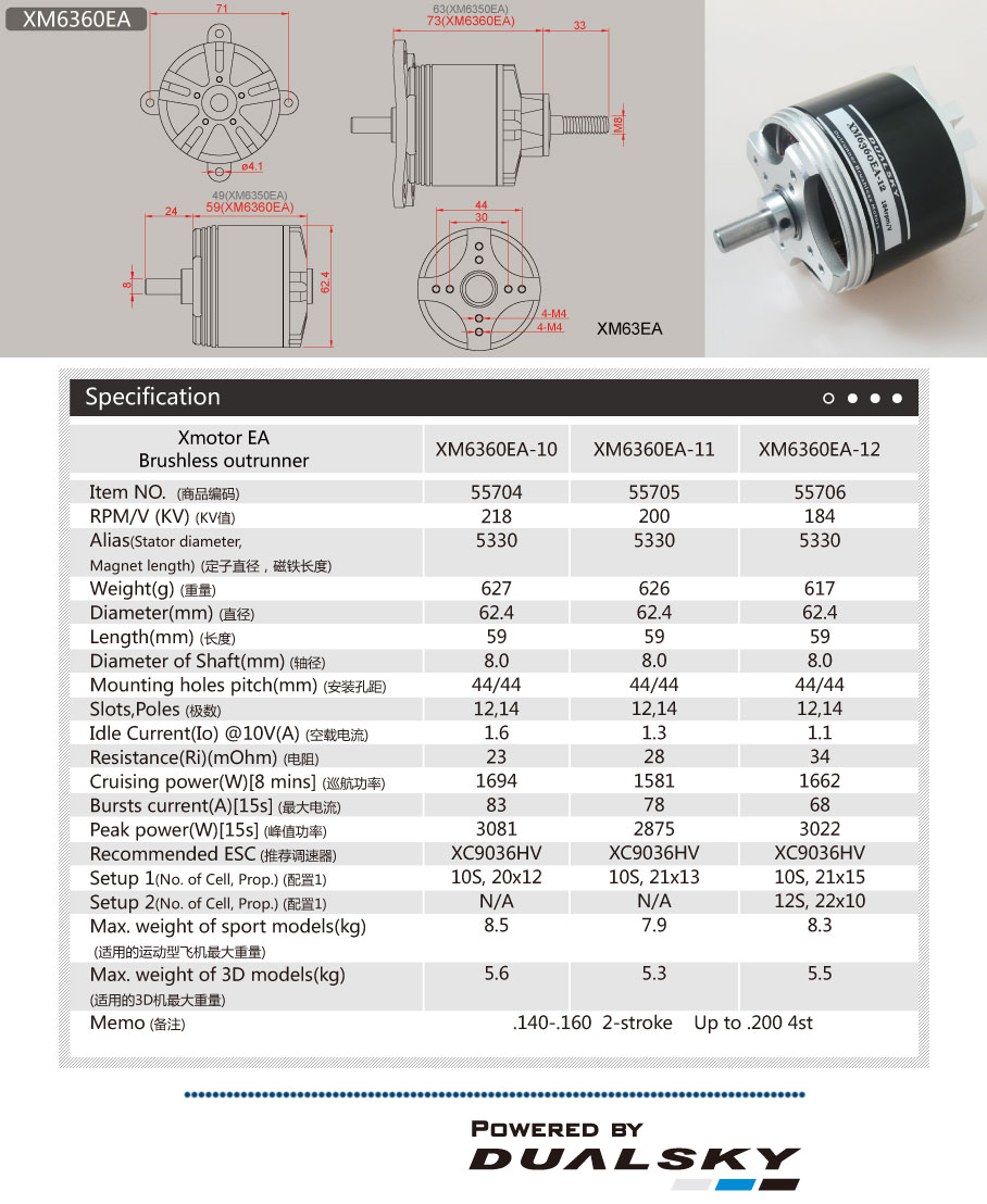 55704 XM6360EA-10 218 RPM/V 627g 3081W