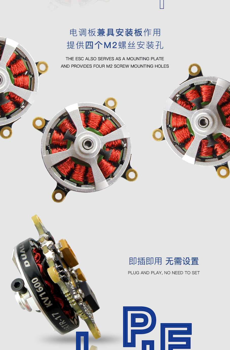 3. Drive system (motor + ESC) is light weight, about 5 grams lighter than the combination of motor and ESC.